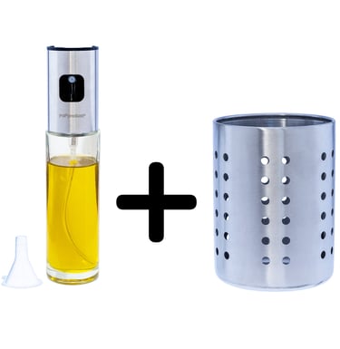 Porta utensilios de cocina + Aceitera pulverizadora.